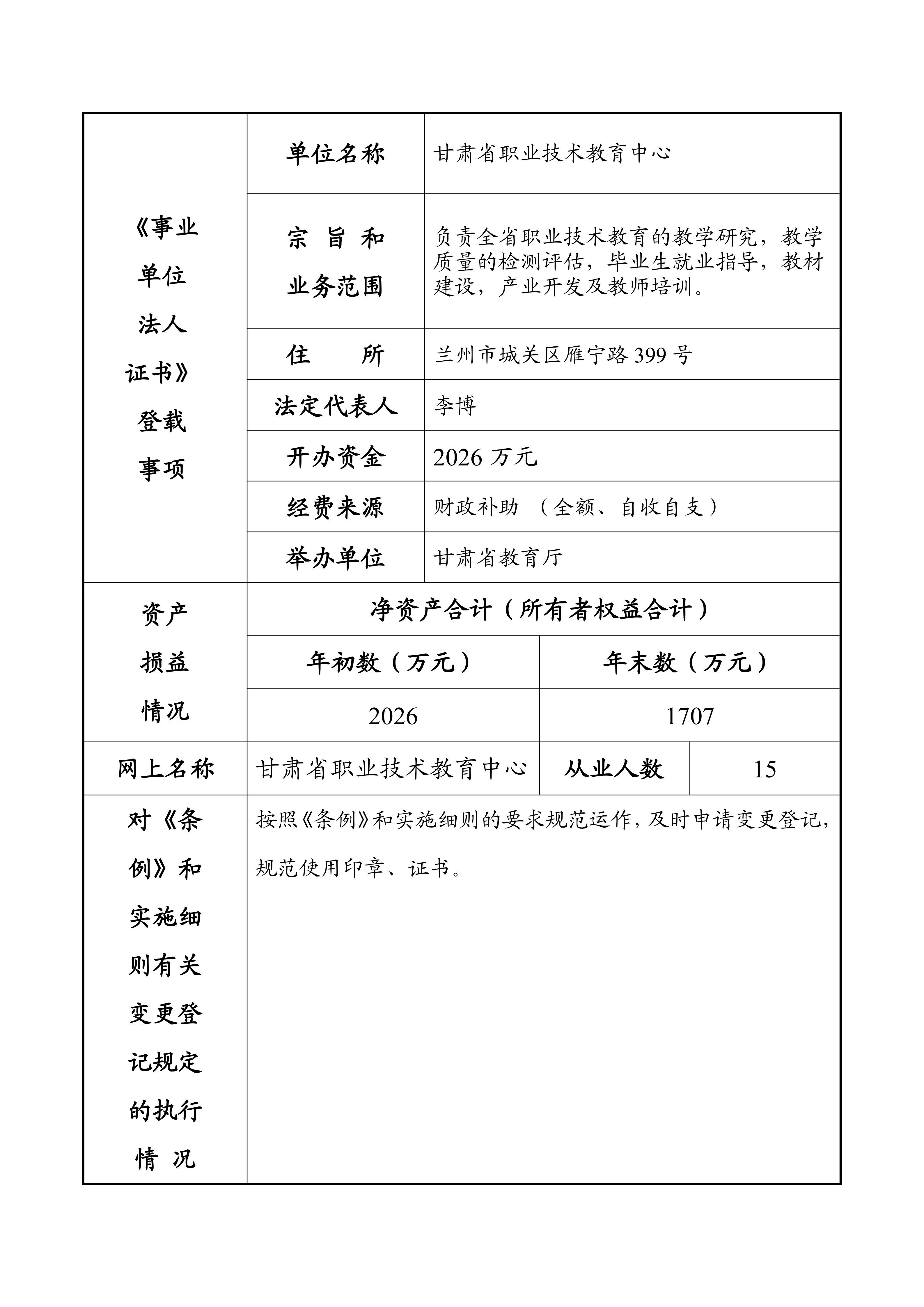 甘肃省职业技术教育中心2025年度法人年度报告书